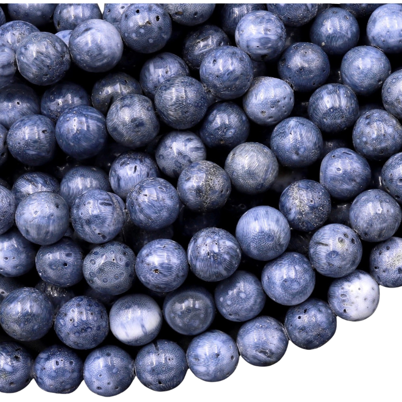 Genuine Natural Denim Blue Sponge Coral Beads (12mm)