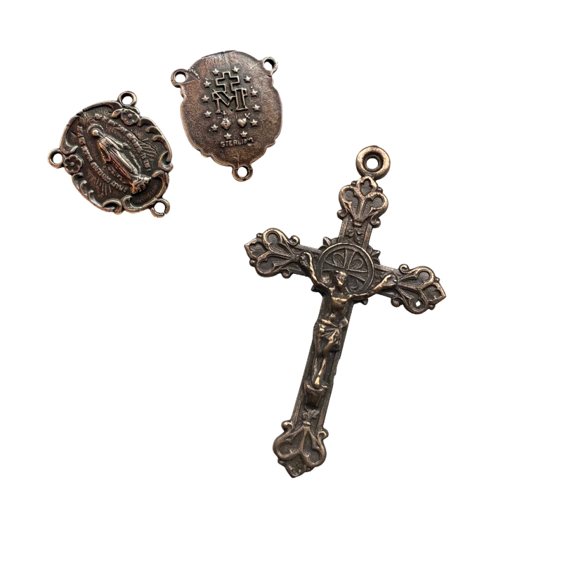 Bronze Antique Replica Miraculous Medal Center & Crucifix